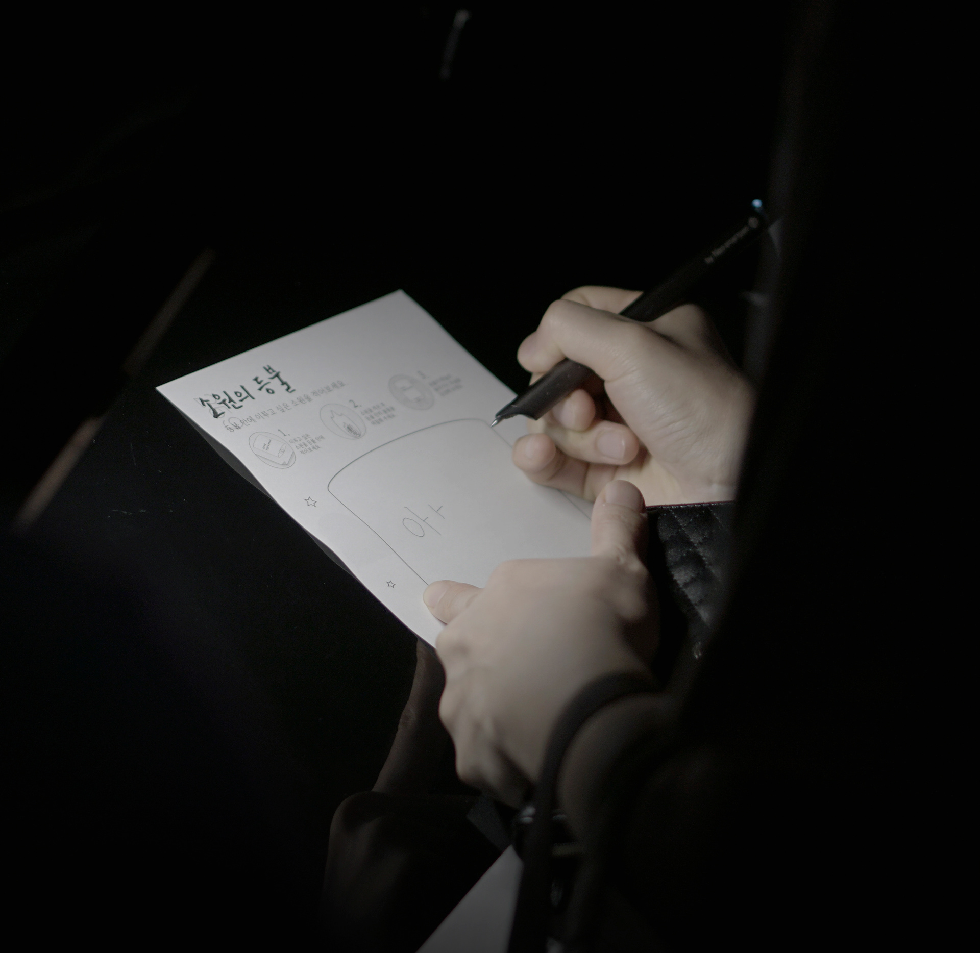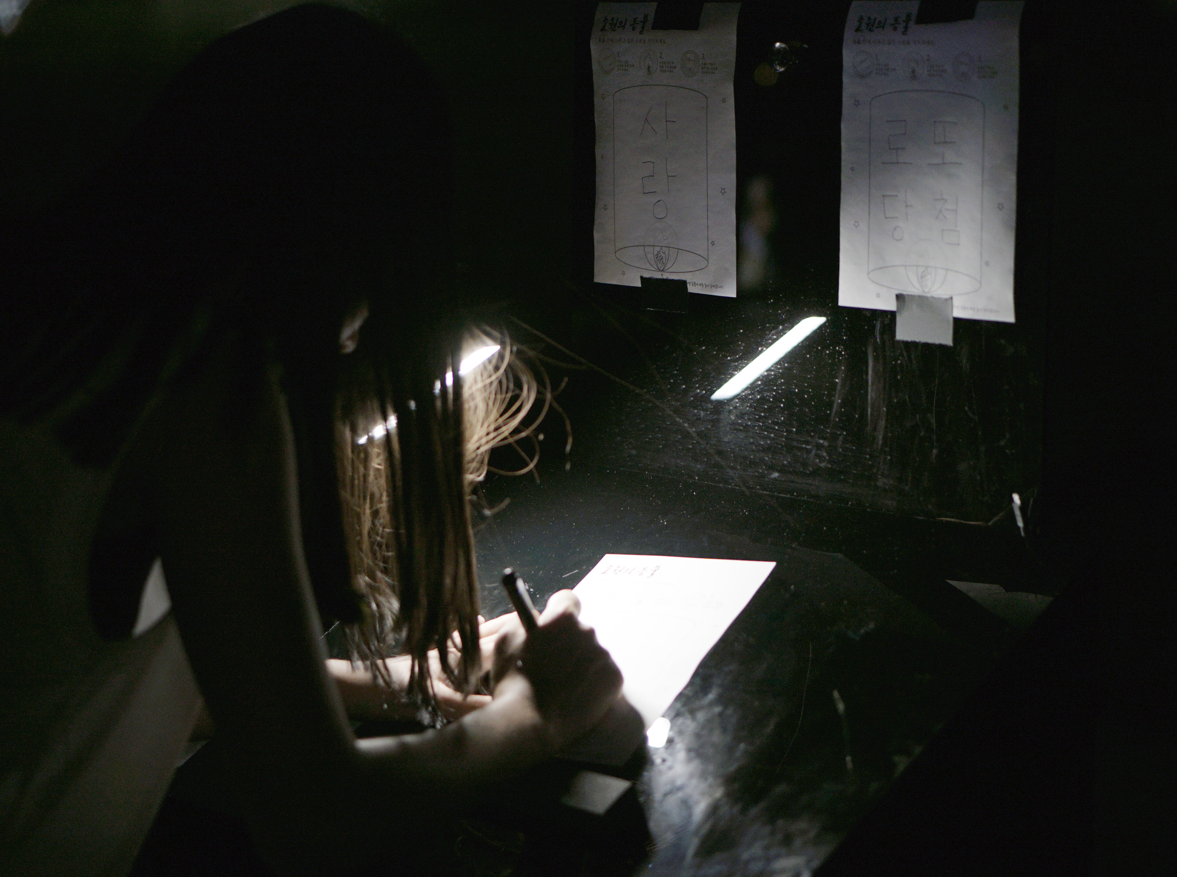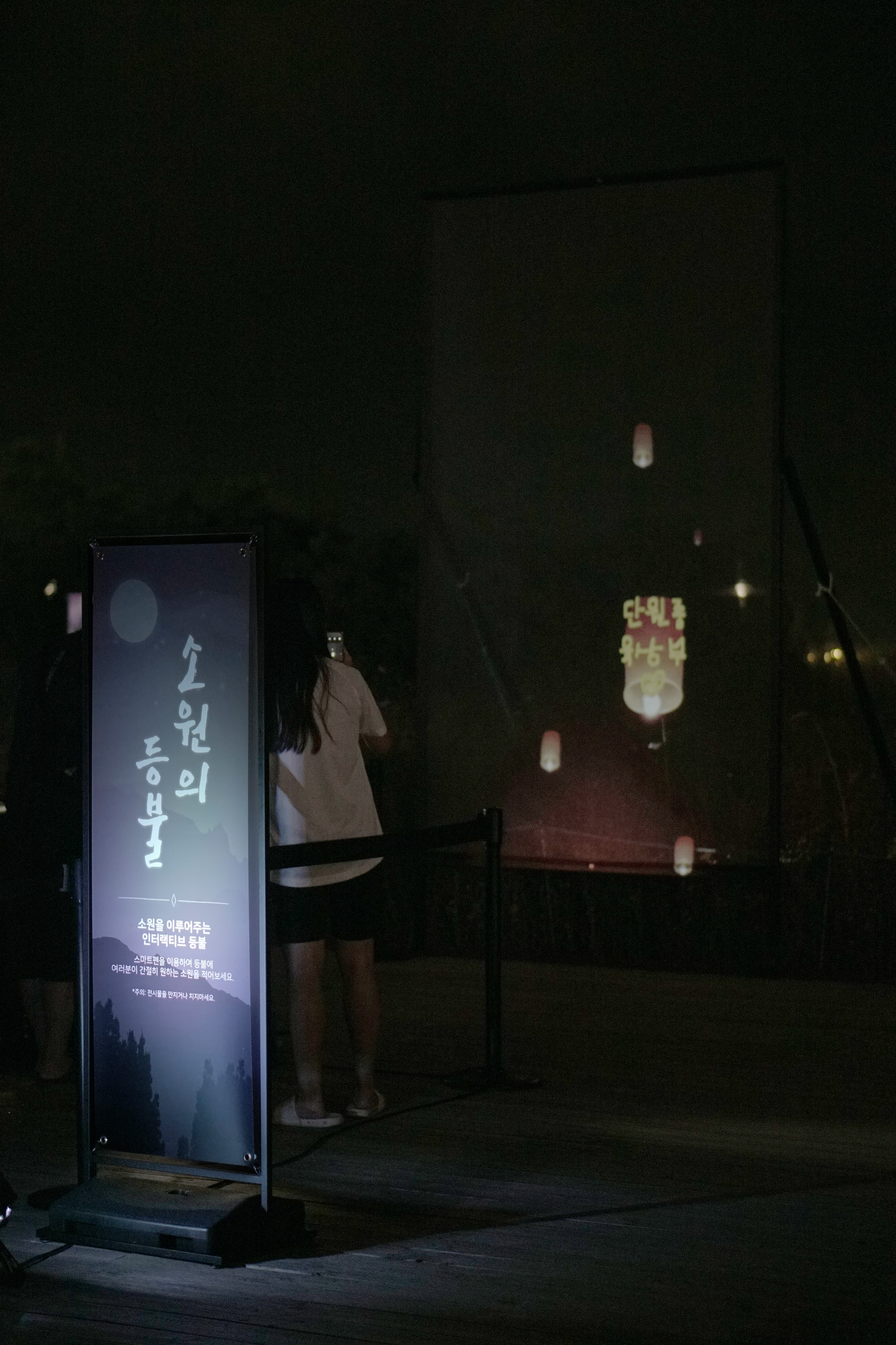 ▶ 투명 스크린에 관객이 적은 소원이 등불 이미지에 담겨서 하늘로 떠오르는 콘텐츠 기획