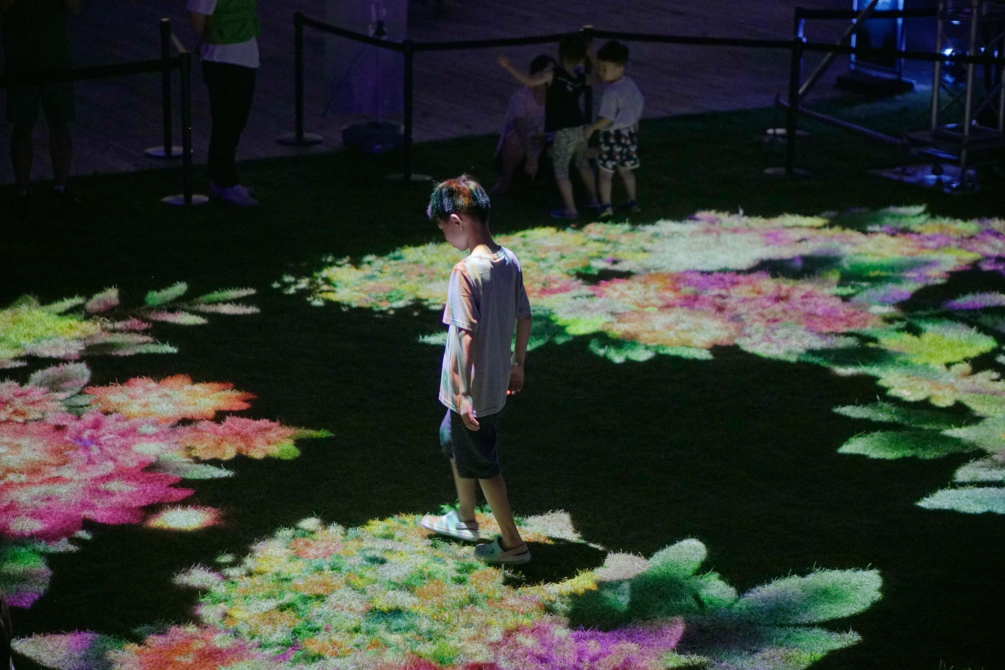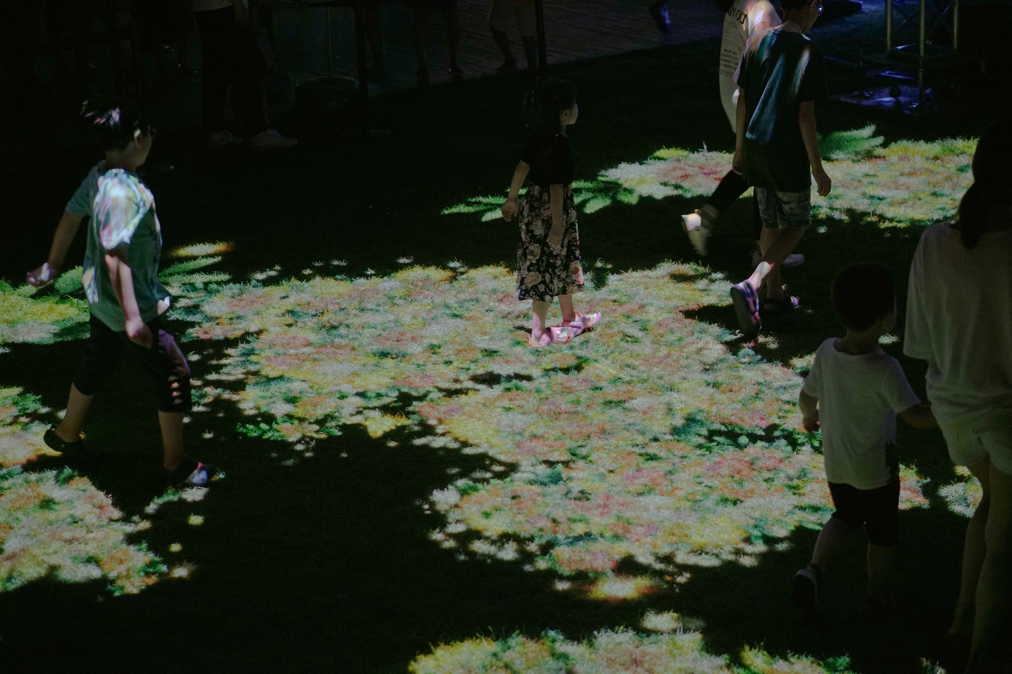 - Images of flowers and fireflies were projected onto the interactive floor map