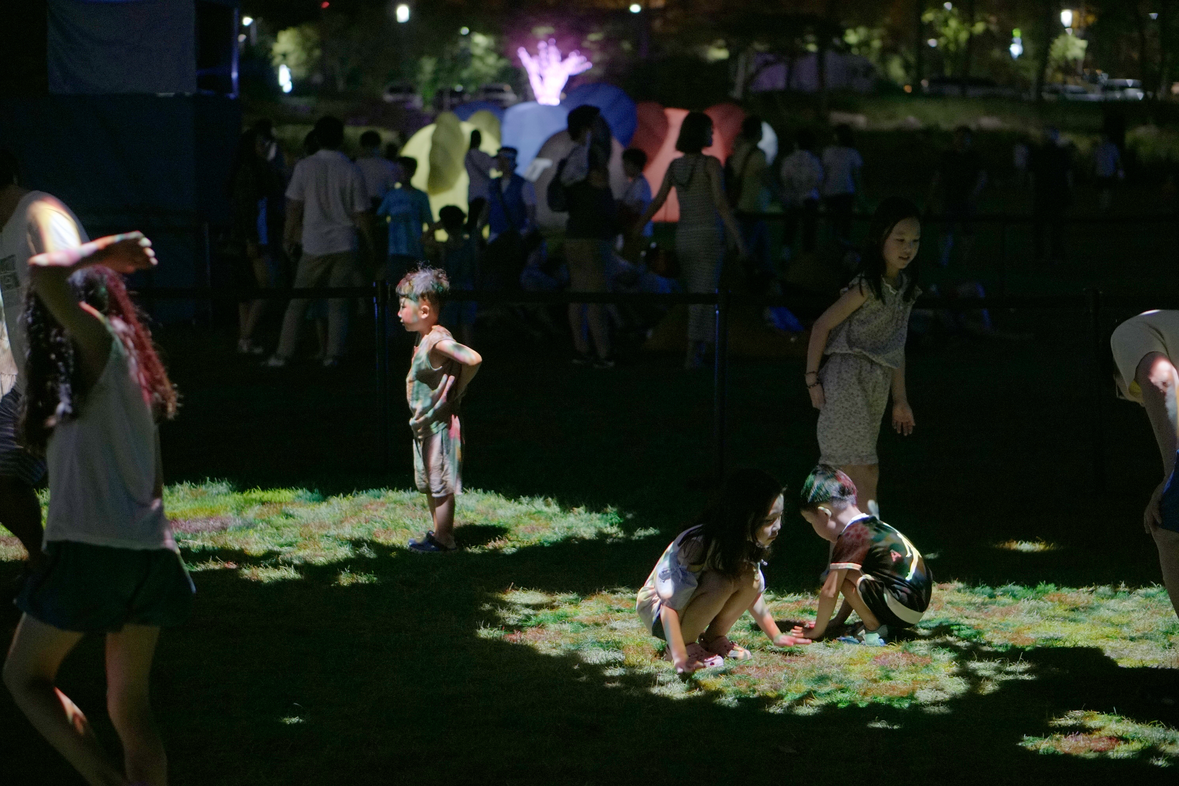 관객들은 한 여름 밤 무더운 날씨에도 남녀노소 할 것 없이 빛을 이용한 인터랙티브 콘텐츠를 즐겼습니다.